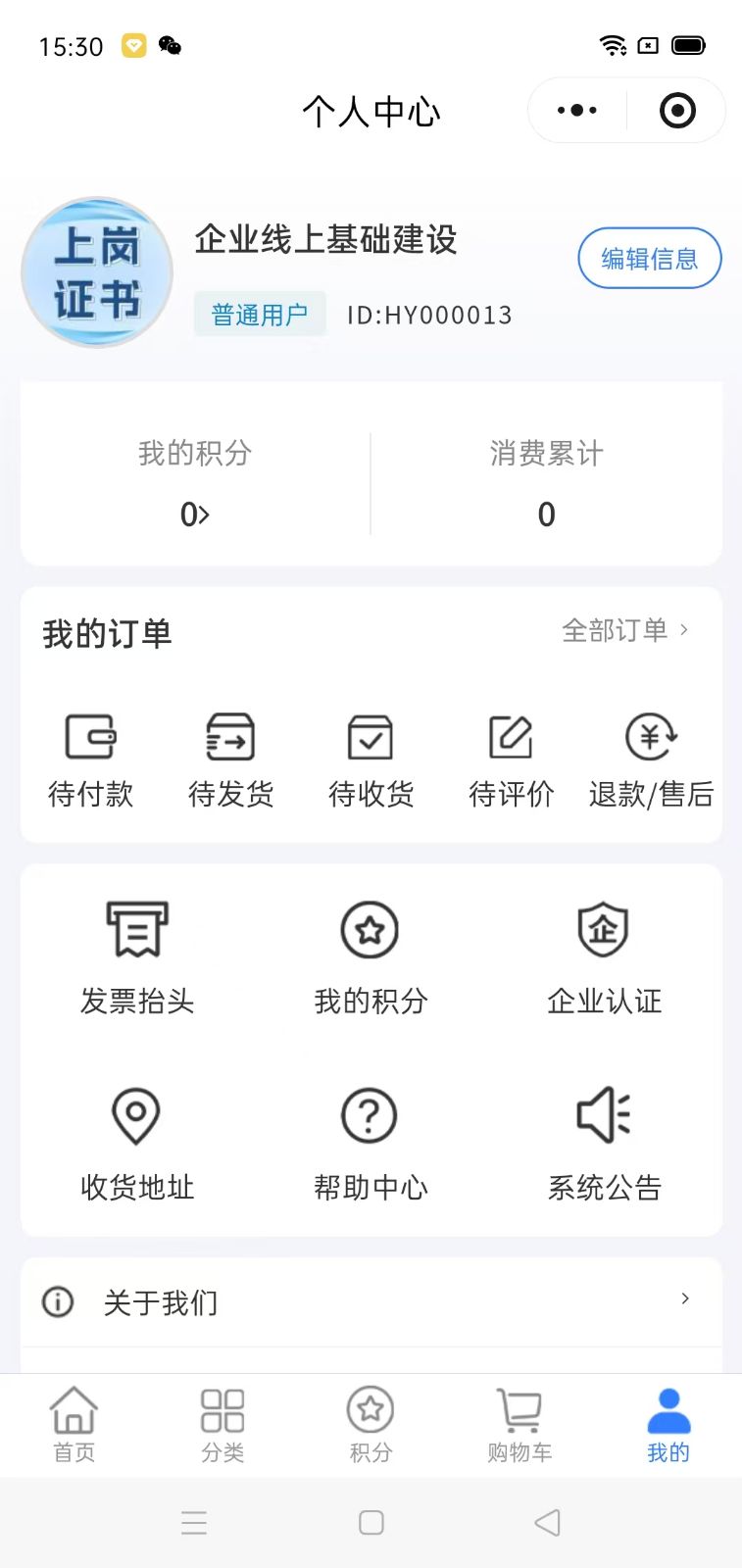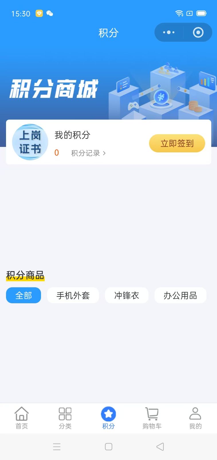 首页,积分商城,商品分类,购物车,个人中心,签到